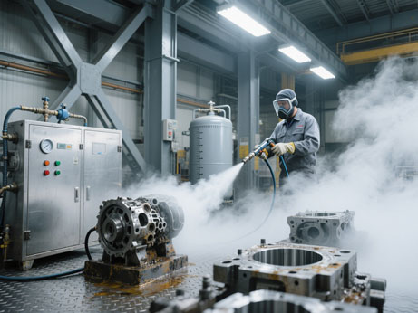 在工業(yè)清潔領(lǐng)域,一場靜悄悄的革命正在發(fā)生。它沒有高壓水槍的轟鳴,沒有化學(xué)溶劑的刺鼻氣味,取而代之的是一股冰冷的“煙霧”和工件煥然一新的光澤。這就是干冰清洗技術(shù)——一種高效、環(huán)保且極...